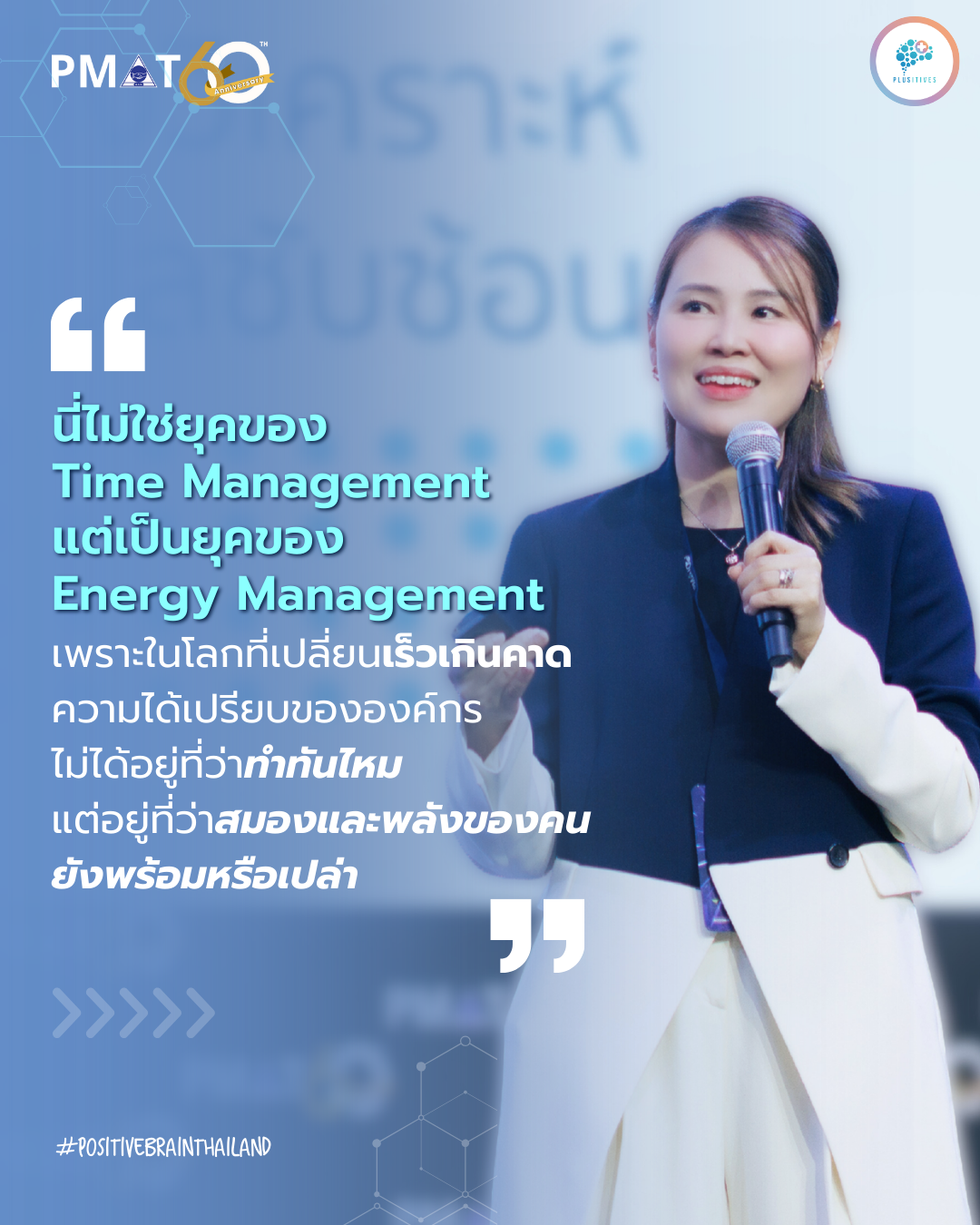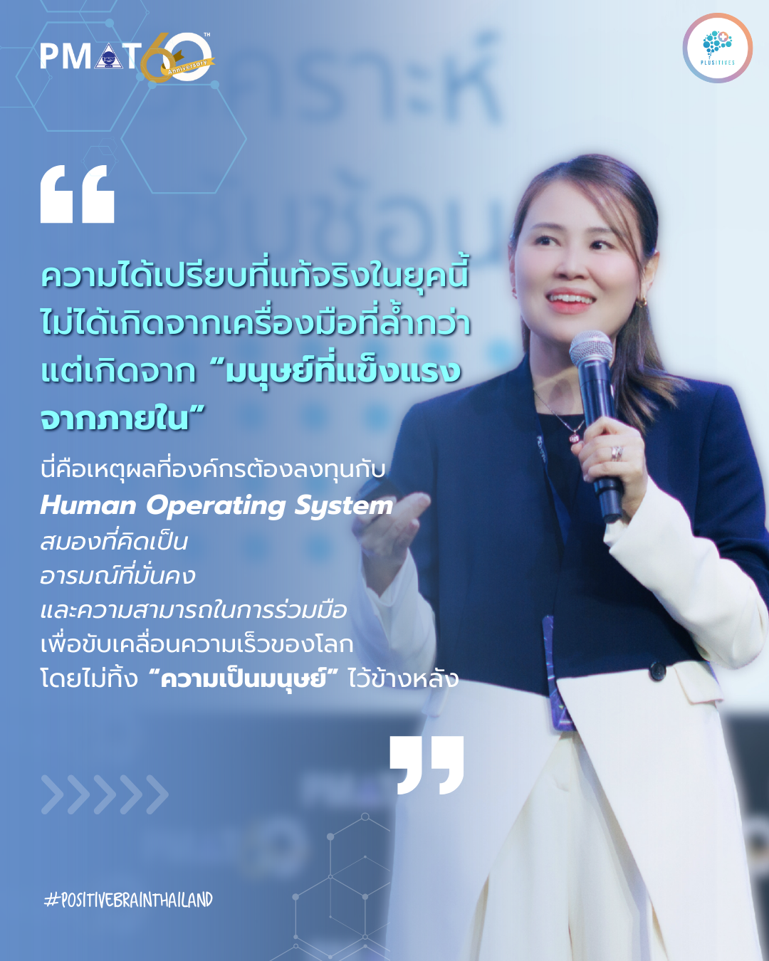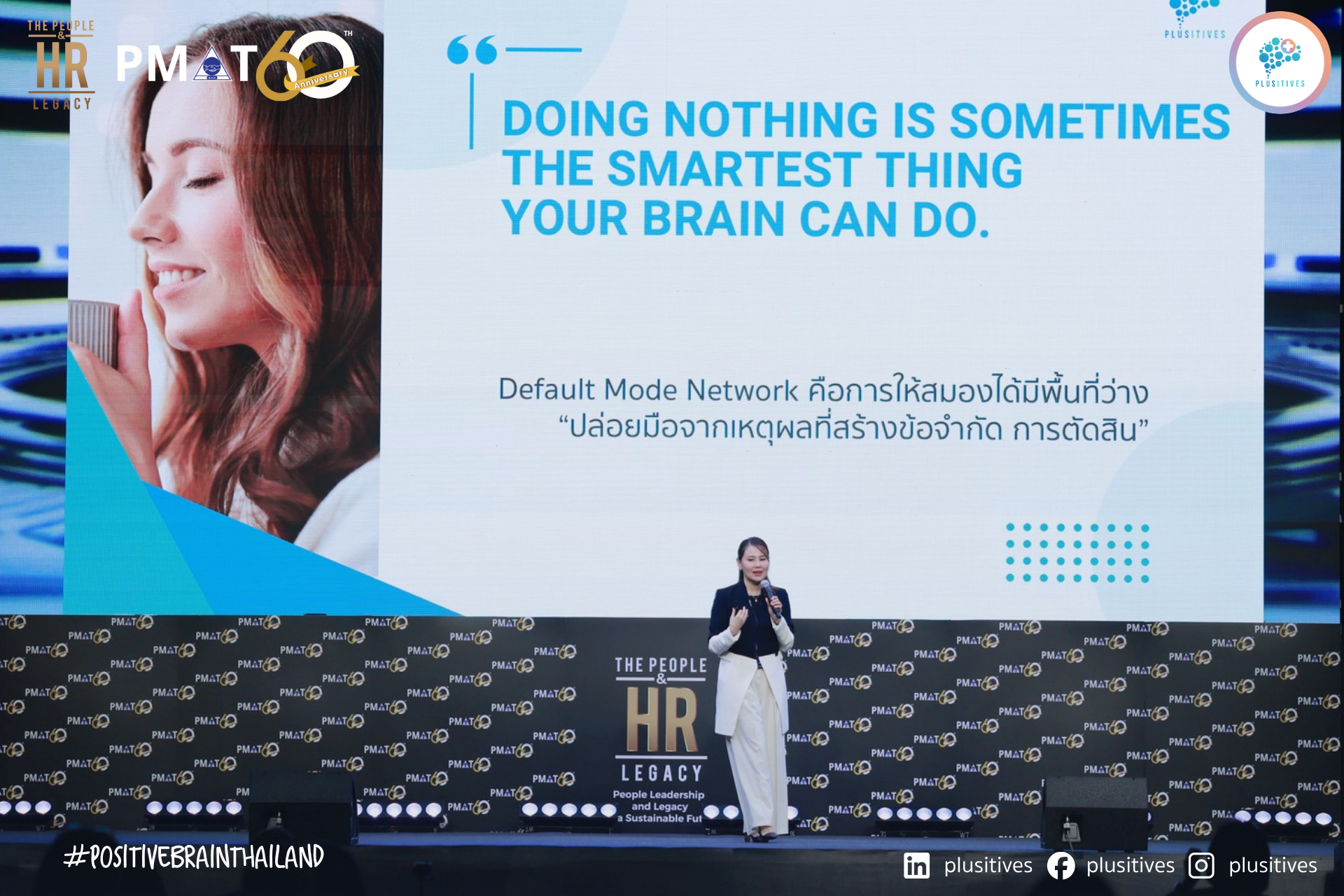 ช่วงเดือนพฤศจิกายน 2025 ที่ผ่านมา Plusitives ได้มีโอกาสเข้าร่วมและเป็นส่วนหนึ่งของเวที PMAT 60th International HR Conference: HR Day 2025 งานประชุมด้านทรัพยากรบุคคลระดับประเทศซึ่งจัดโดยสมาคมการจัดการงานบุคคลแห่งประเทศไทย (PMAT) ระหว่างวันที่ 12-13 พฤศจิกายน 2025 ซึ่งเป็นพื้นที่รวมผู้นำองค์กร HR และผู้เชี่ยวชาญจากหลากหลายอุตสาหกรรมมาร่วมแลกเปลี่ยนมุมมองต่ออนาคตของโลกการทำงานในยุคที่ความไม่แน่นอนกลายเป็นเรื่องปกติ ในโอกาสนี้อาจารย์รัตตี้ รัตนันท์ เกลียวปฏินนท์ในบทบาท CEO & Executive Coach แห่ง Plusitives Co., Ltd. และ Certified Neuroleadership & VIA Strengths-Based Workplace Consultant ได้รับเกียรติขึ้นเวทีเป็น Guest Speaker เพื่อถ่ายทอดแนวคิดและมุมมองในหัวข้อ Leading with the Brain Advantage Building Future-Ready Leaders for the New Economy ที่จะชวนให้ผู้ฟังหันกลับมามองสมองของผู้นำในฐานะแหล่งความได้เปรียบจากภายใน ท่ามกลางโลกที่เศรษฐกิจผันผวน เทคโนโลยีเปลี่ยนเร็ว และปัจจัยภายนอกไม่มั่นคงเหมือนเดิม