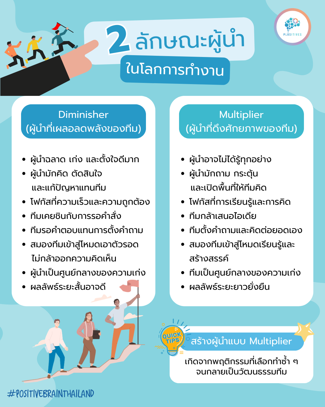 ผู้นำที่อาจไม่ได้รู้ทุกอย่าง แต่สิ่งที่ทำให้พวกเขาโดดเด่นและเป็นที่รักของคนในทีมคือการที่พวกเขารู้วิธีทำให้สมองของคนอื่นทำงานได้เต็มที่เต็มศักยภาพ และยืนอยู่ข้างทีมเพื่อให้ทุกคนพัฒนาศักยภาพได้เต็มที่ในแบบของตัวเอง และประเด็นสำคัญคือ… ผู้นำแบบ Multiplier ไม่ได้เกิดจากพรสวรรค์พิเศษแต่มาจากพฤติกรรมที่เลือกทำซ้ำ ๆ จนกลายเป็นวัฒนธรรมทีม