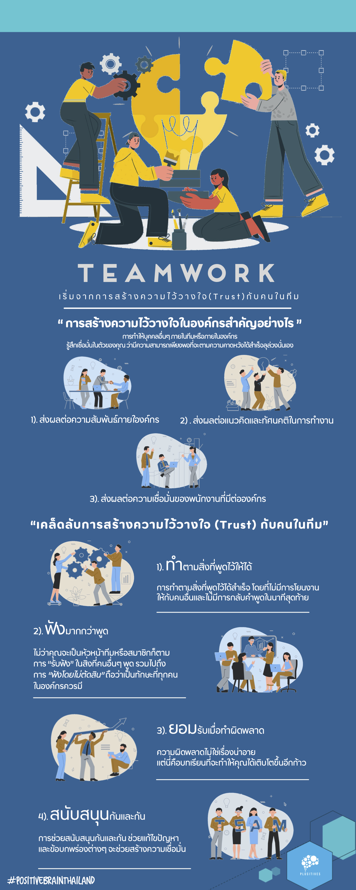 ทีนี้เรามาถึงเนื้อหาส่วนสำคัญที่จะช่วยให้คุณเริ่มต้นกับการสร้างทีมงานให้มีประสิทธิภาพแล้ว ทาง Plusitives ได้สรุปใจความสำคัญมาให้เป็นที่เรียบร้อย ไปดูกันเลยว่าต้องทำอย่างไรบ้าง องค์กรของคุณถึงจะมี Teamwork ที่ดี